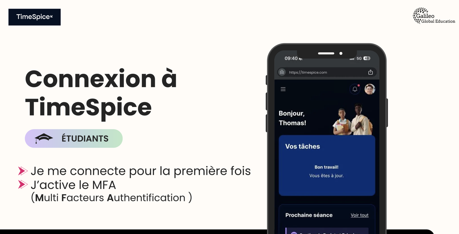 TimeSpice vous permet d’accéder aux fonctionnalités suivantes : votre emploi du temps, votre messagerie PSB, l’espace de justification des absences, vos notes et moyennes, vos services en ligne (PSB Learn, SWS, vos bases de données), ainsi que vos certificats de scolarité.